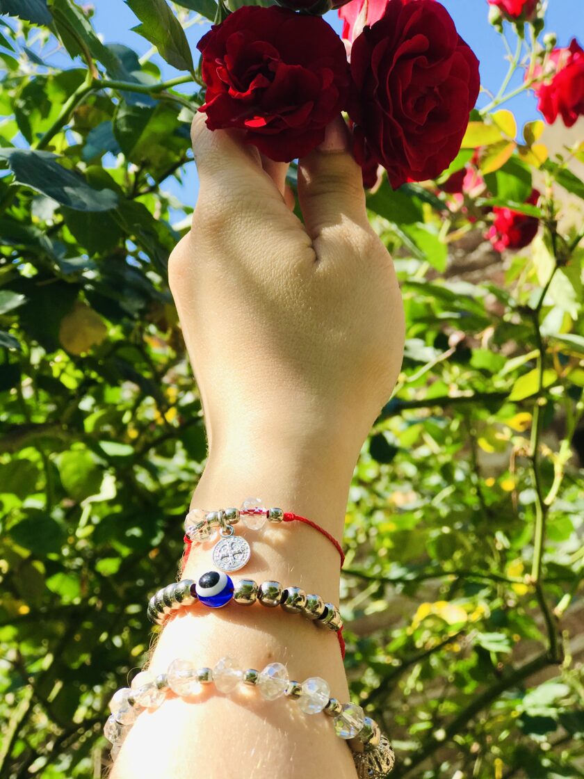 Pulsera HILO ROJO AMULETO y SAN BENITO $380 c/u / Pulsera en cristales de roca $450 -
