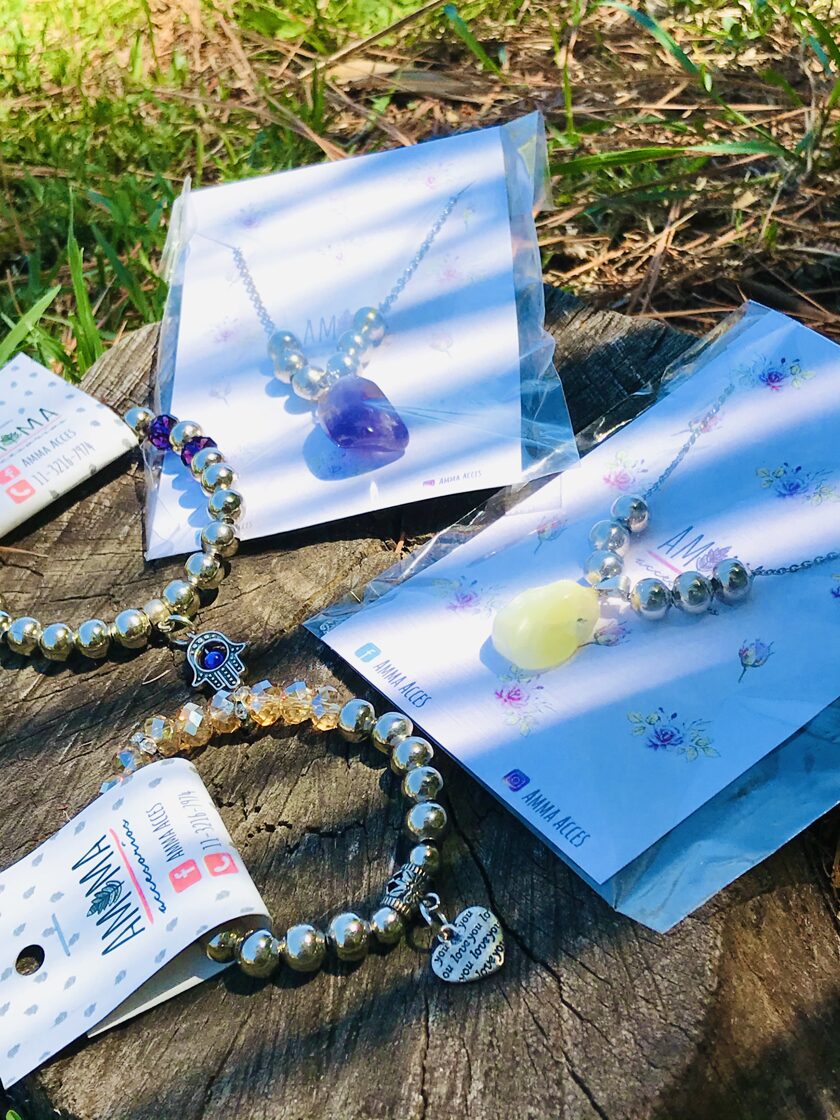 AMMA BOX “Cuarzo Amarillo” - Colgante + Pulsera + Aros -