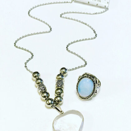 Colgante de acero quirúrgico con Corazón de Cuarzo Cristal con Baño de Plata $1500 -